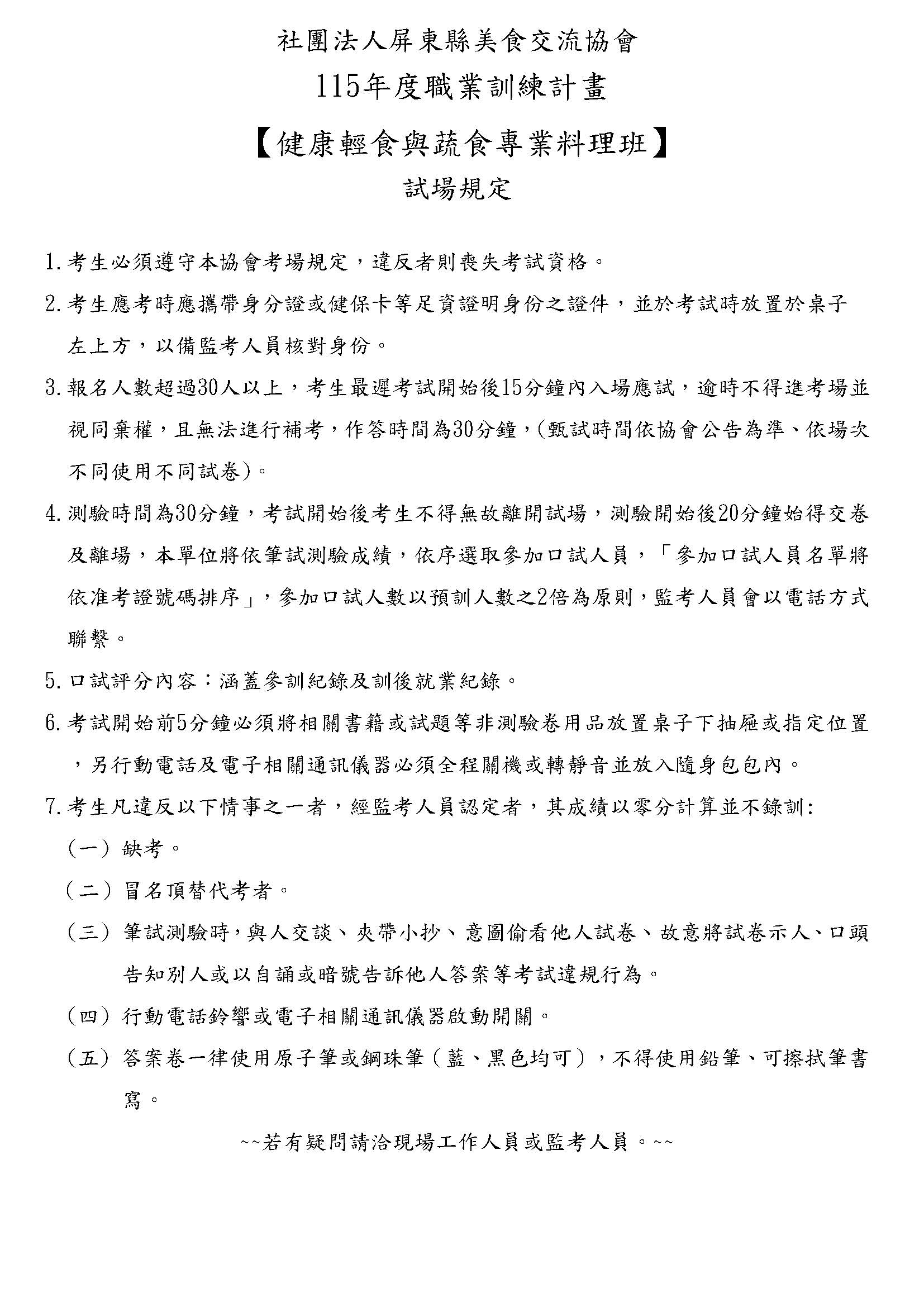 115年職業訓練-健康輕食與蔬食專業料理班-甄試規範